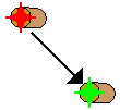 The diagram to the left shows why motion and direction can not be determined without more than one scintillator tube. In Activities 2 and 3, arrays of scintillator tubes are used and it is important to understand why entire arrays are needed. Observing one scintillator tube light up and then another, indicates particle movement in the direction tube 1 to tube 2. (In this activity, red and green markers are used to show which tubes have been hit by particles. The red and green colors have no significance in Activity 2.)